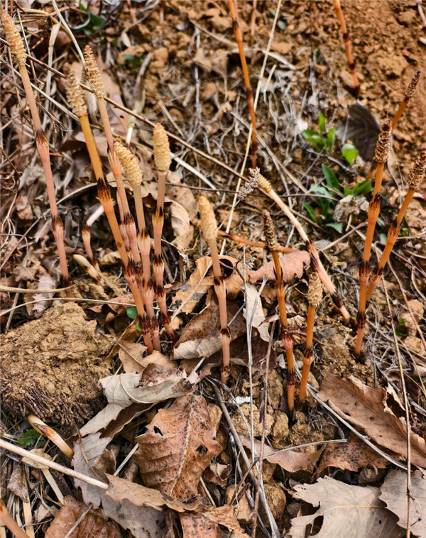 据悉,问荆草被称为“天然探金草”,其根系能分泌有机酸降低土壤pH值,激活难溶解的金离子并富集吸收,不少有金矿的地方很容易出现大面积的问荆草。